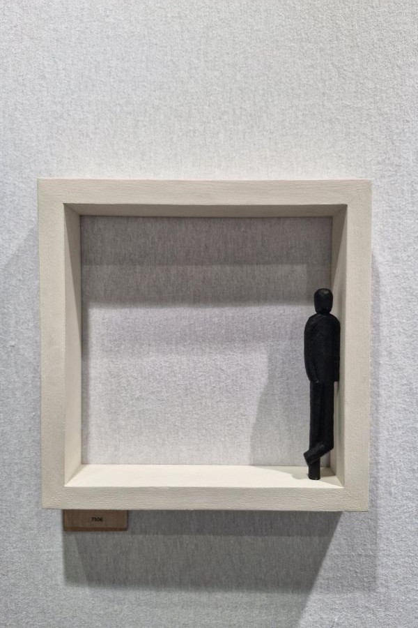 D'habitude présenté sur un plot, ici dans des cadres en chêne.